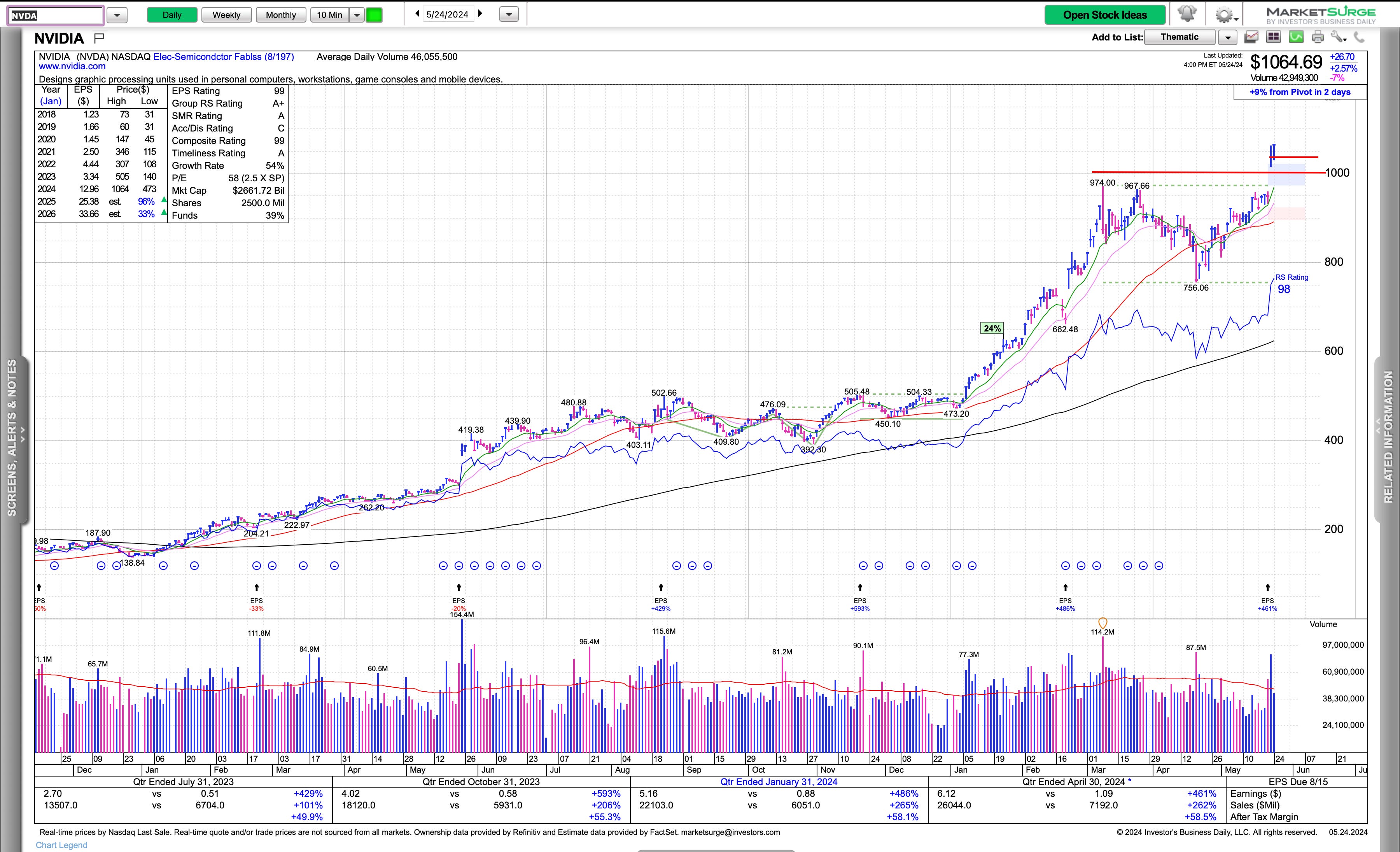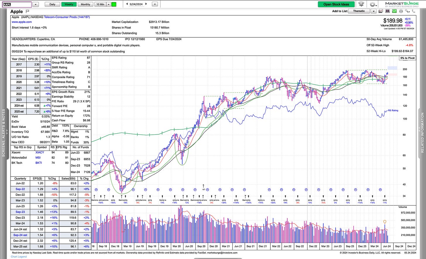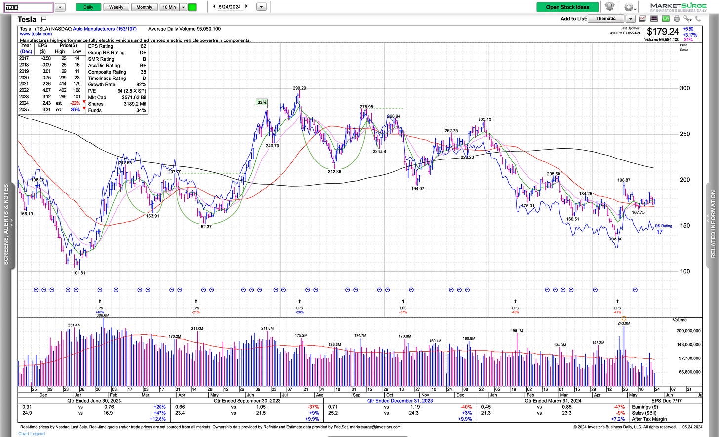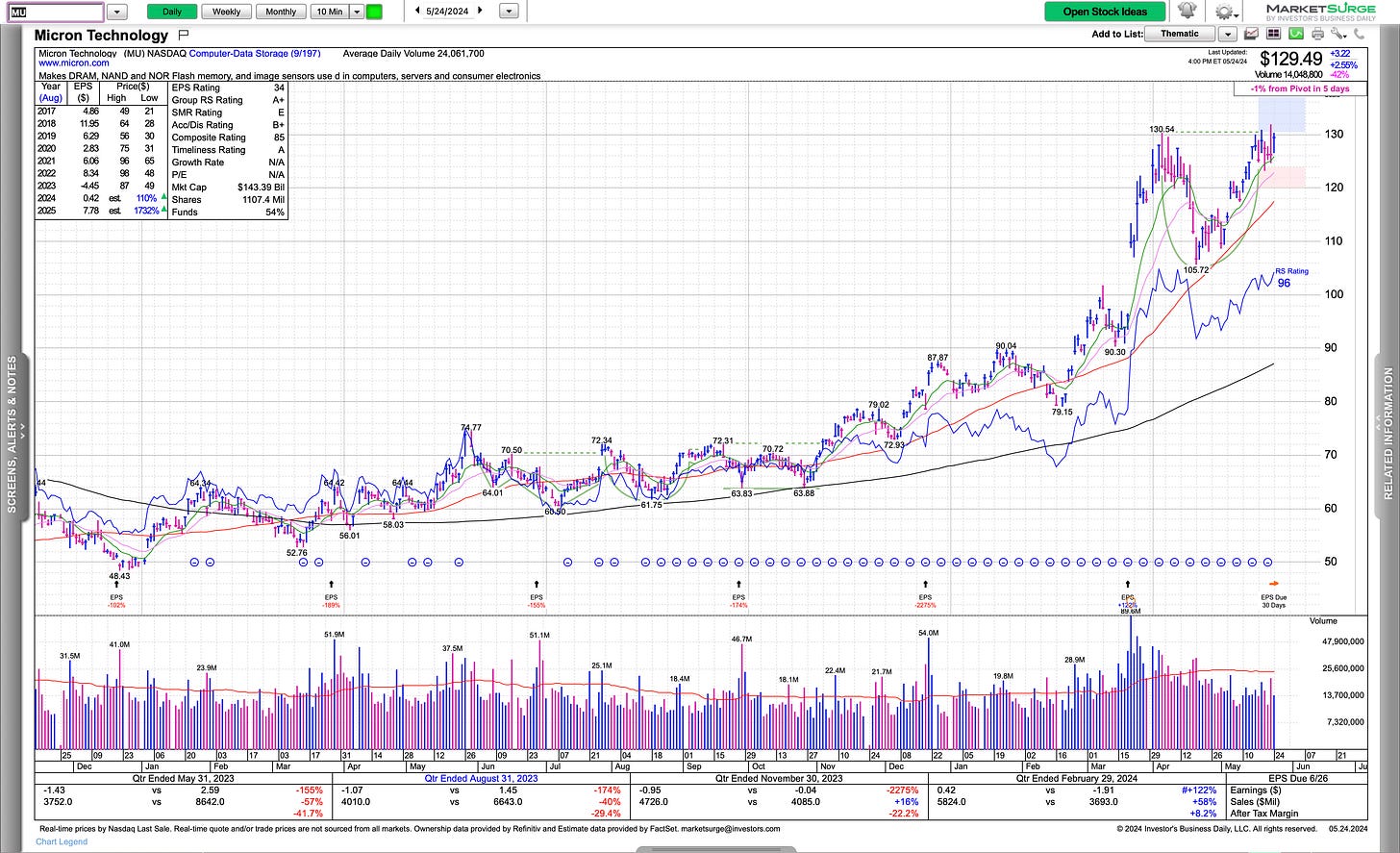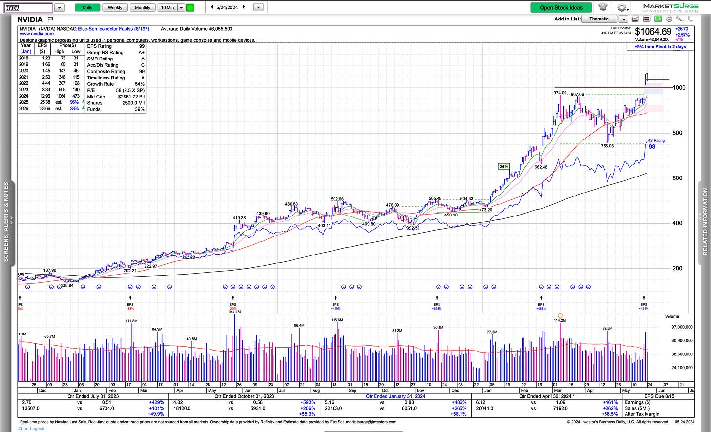 As I shared with my thoughts, if NVDA is going to hold it’s HVC and the $1,000 level, we may be in for an uncomfortable run to the upside. If that fails, with no clues of right sides of bases in other names, huge red flag.
