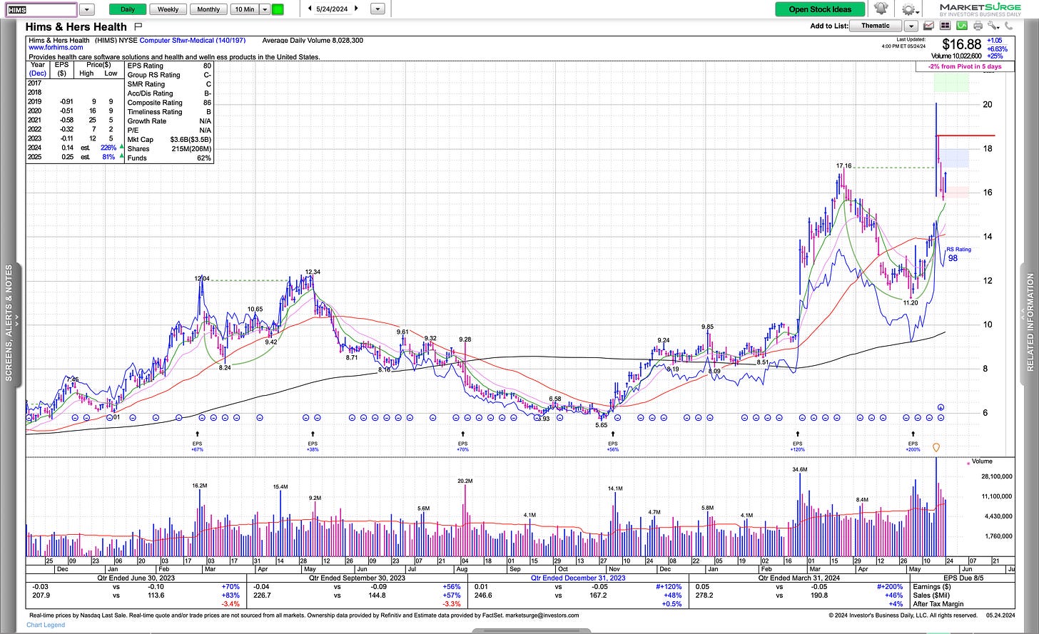 Touched on HIMS last week and it still looks great, had a massive move and then gave it up to sit at the breakout level, above it’s HVC which may take sometime, it looks primed for more.
