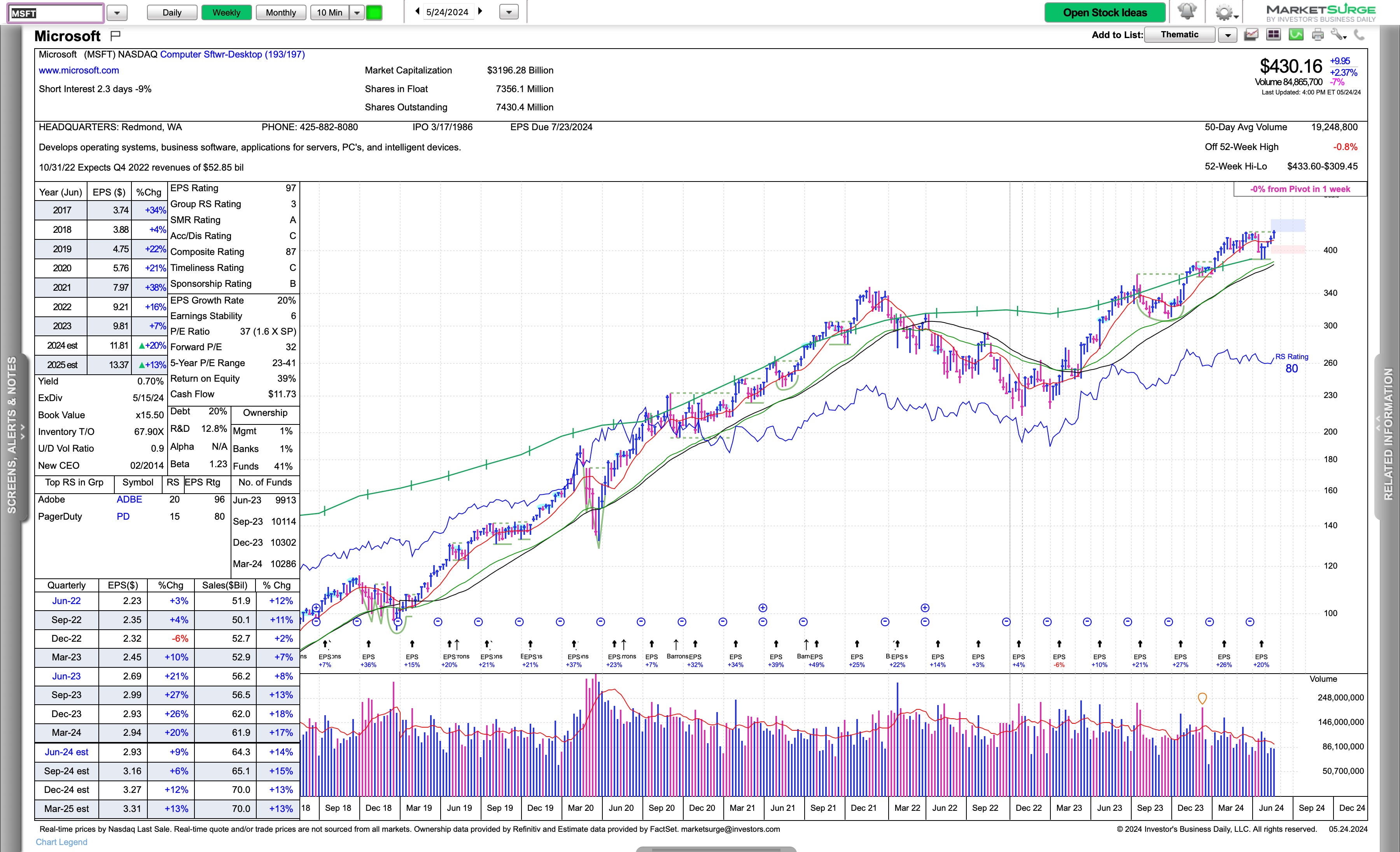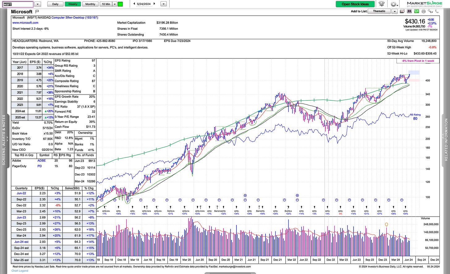 MSFT the largest name and back to trading at all time highs and threatening all time high territory.