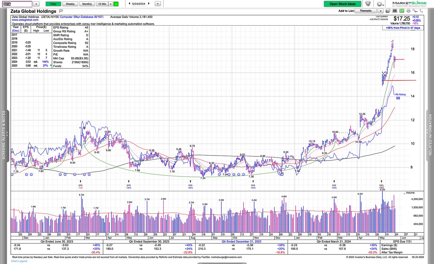 ZETA had a pullback and so far its showing signs of character change, still looking like it’s building some maturity and preparing for another run.
