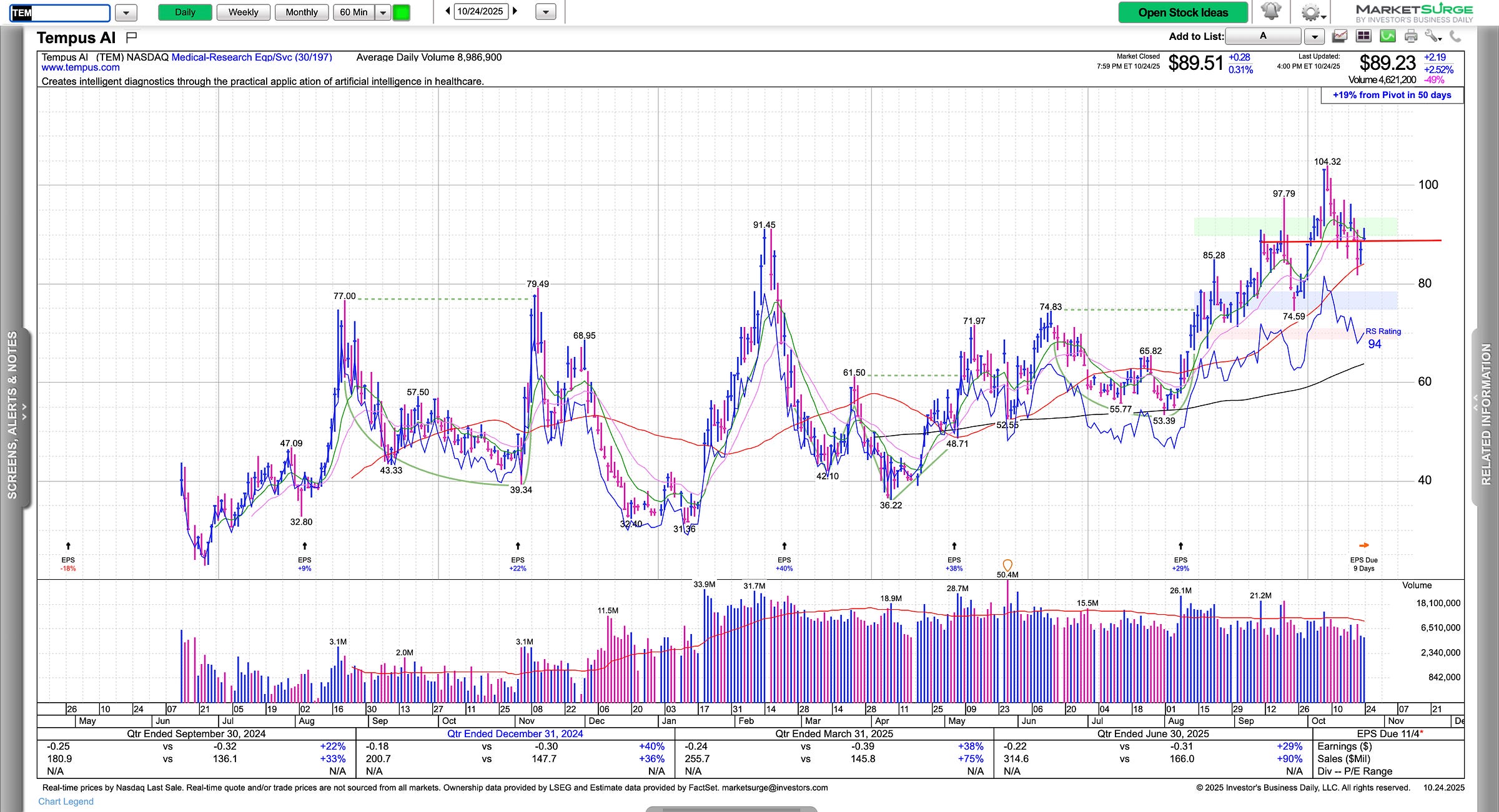 TEM, milling around this high volume close, think there is a lot of potential here but the price action is still chaotic and immature.