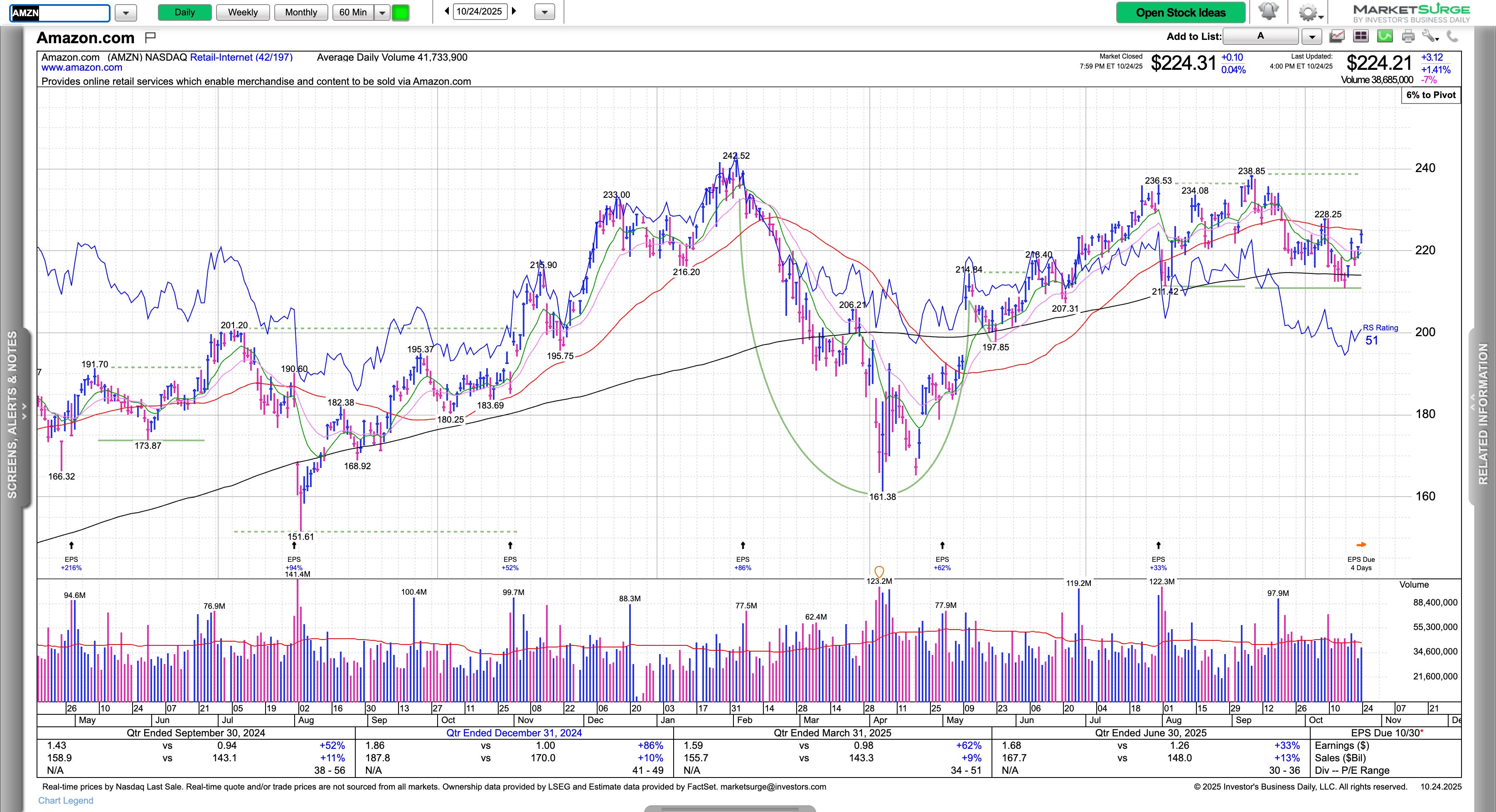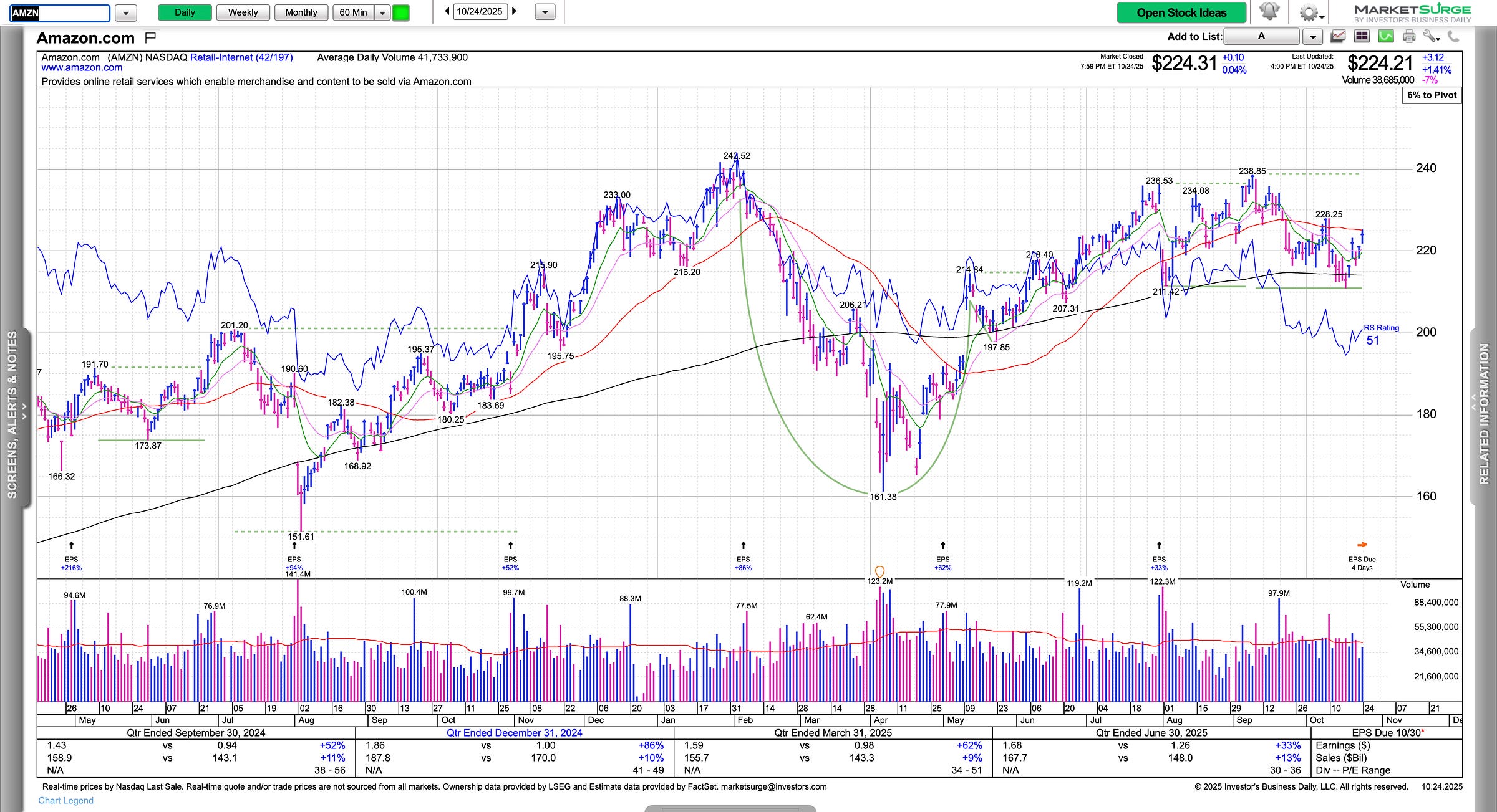 AMZN has been sloppy to say the least, ideally plays catch up through an earnings move.