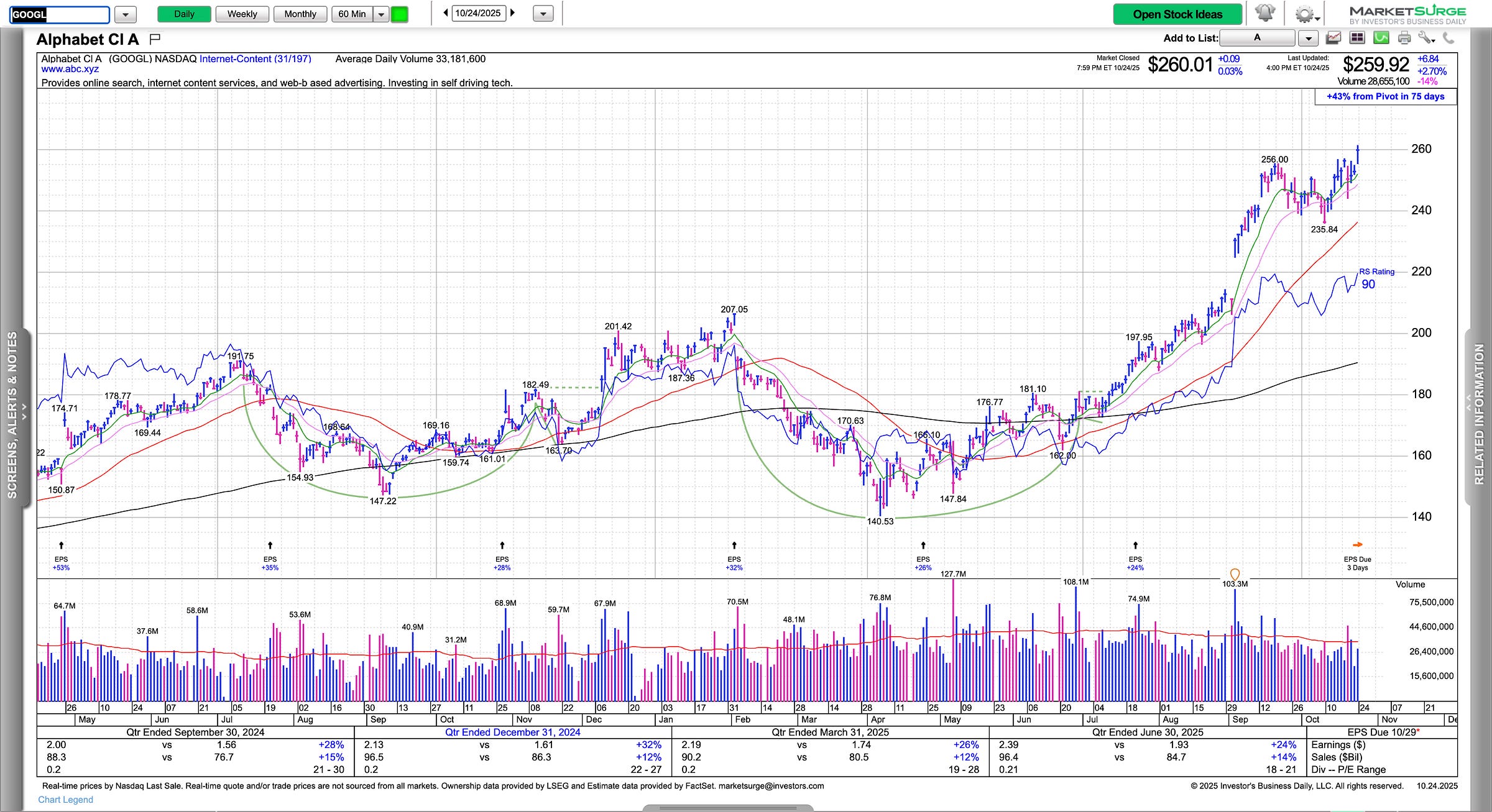 GOOGL continues higher after a brief pause at 3 trillion market cap.