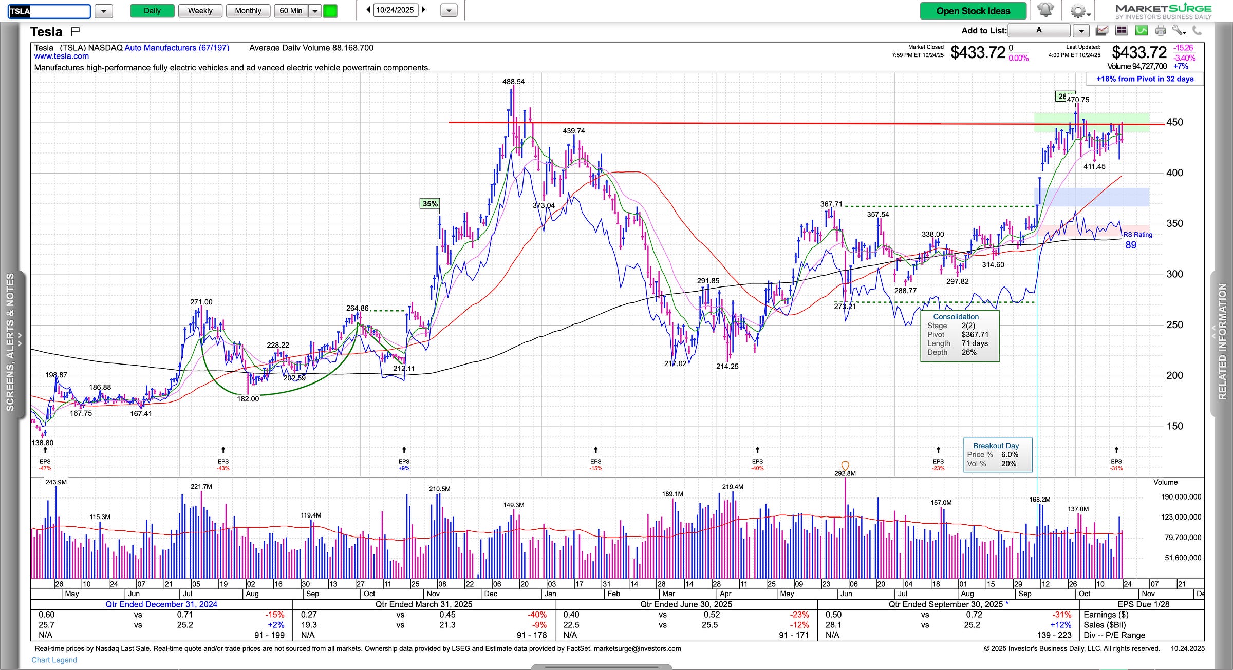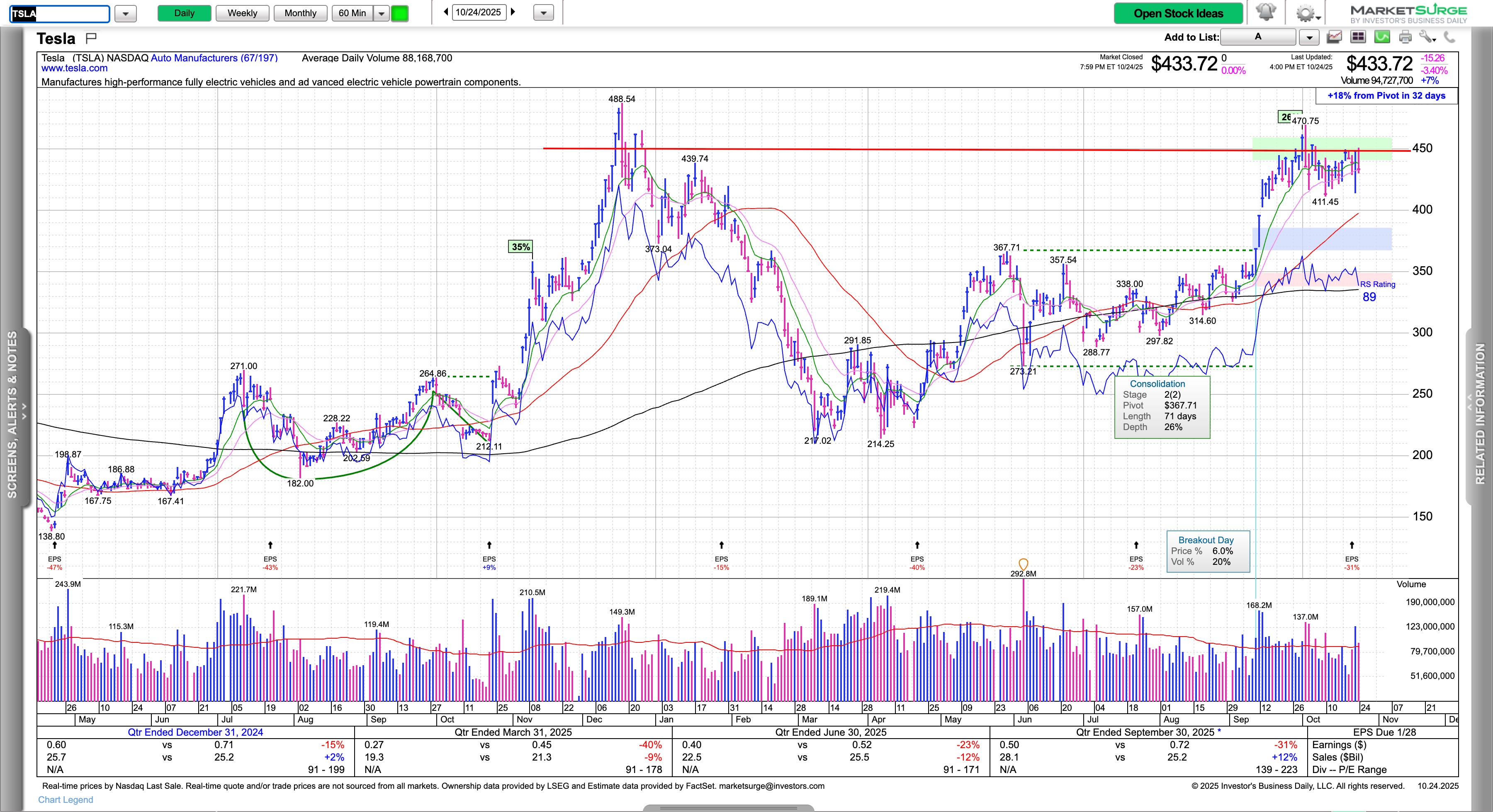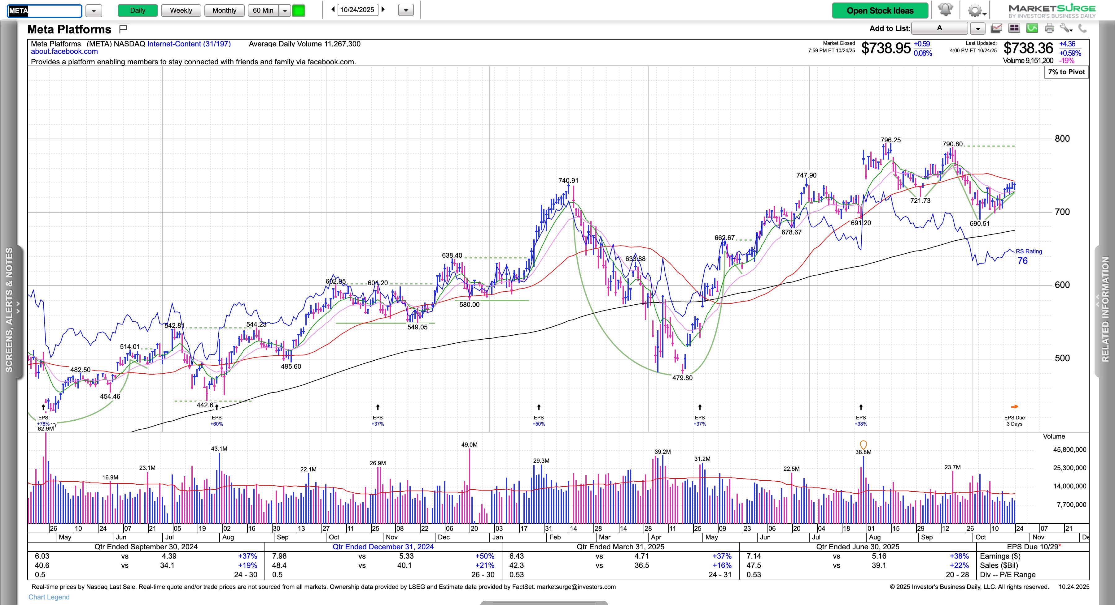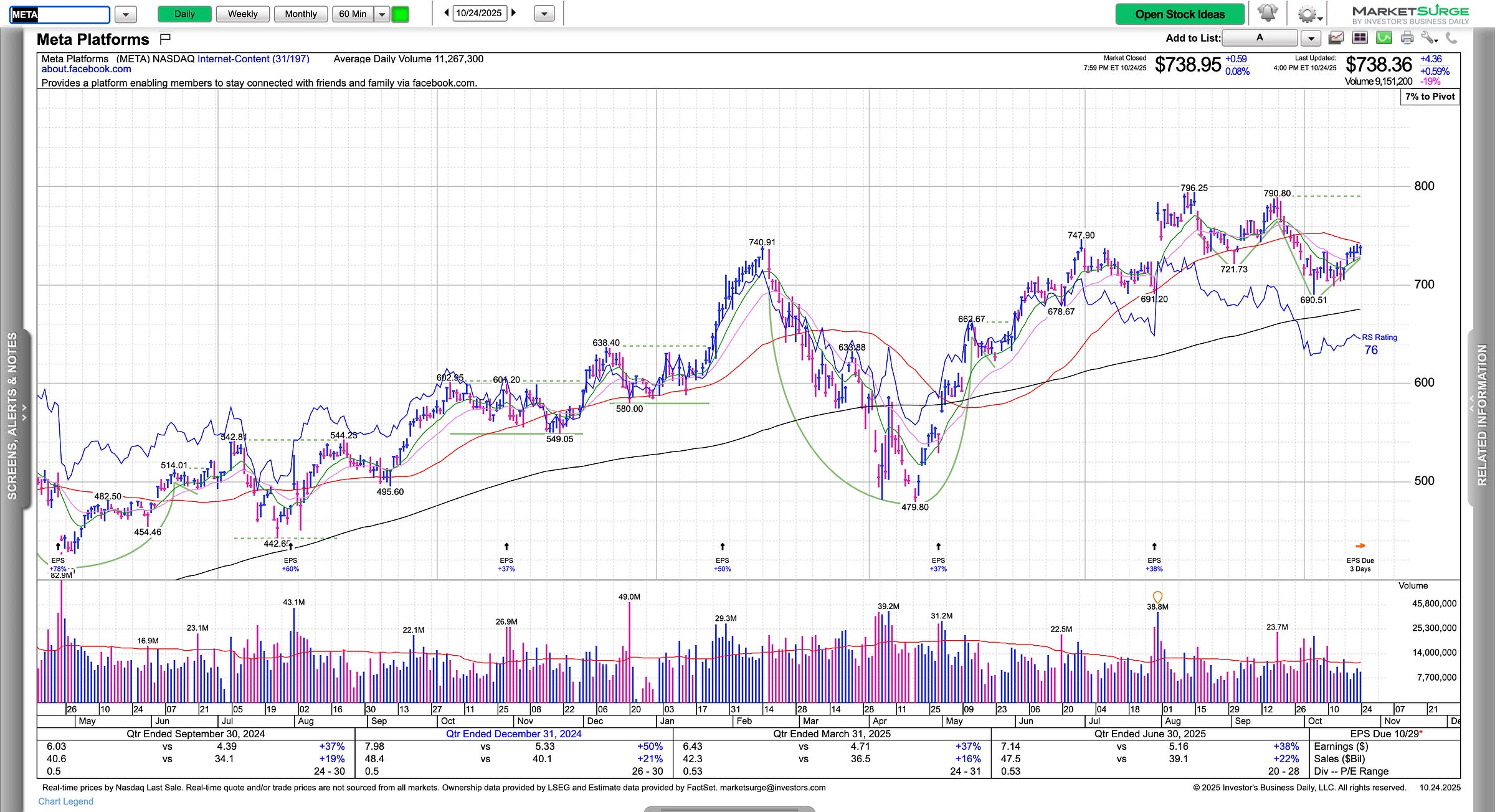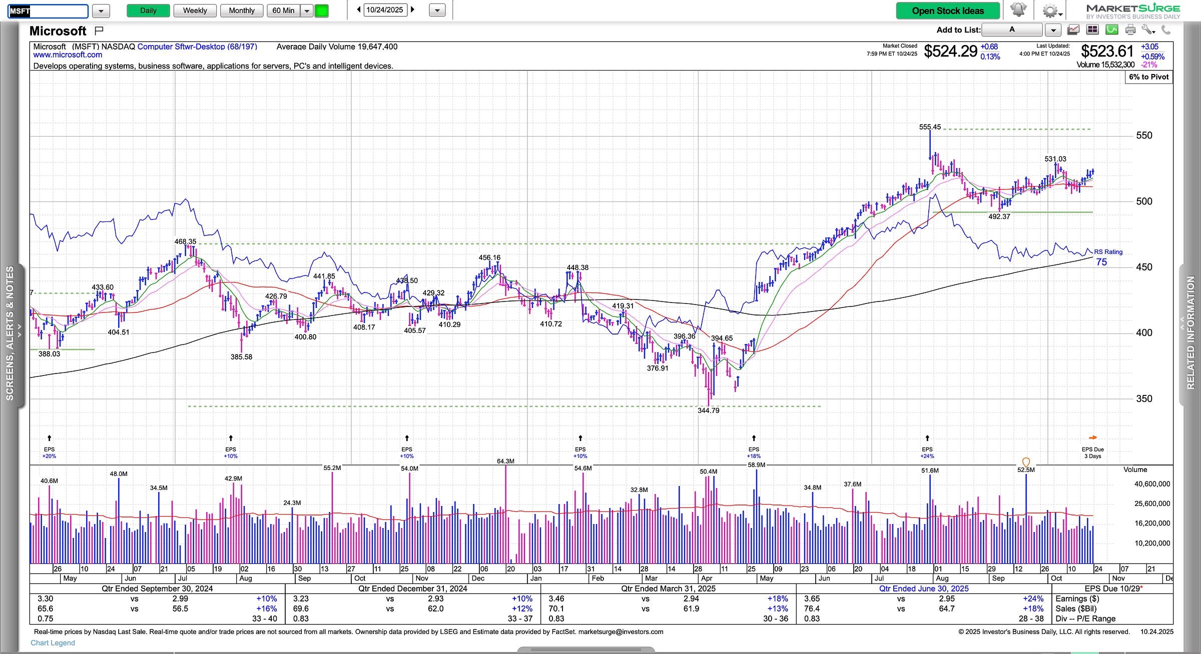 MSFT which we discussed the stability at the $500 level, has a meaningful high volume close, sandwiched between the $500 level and the HVC.