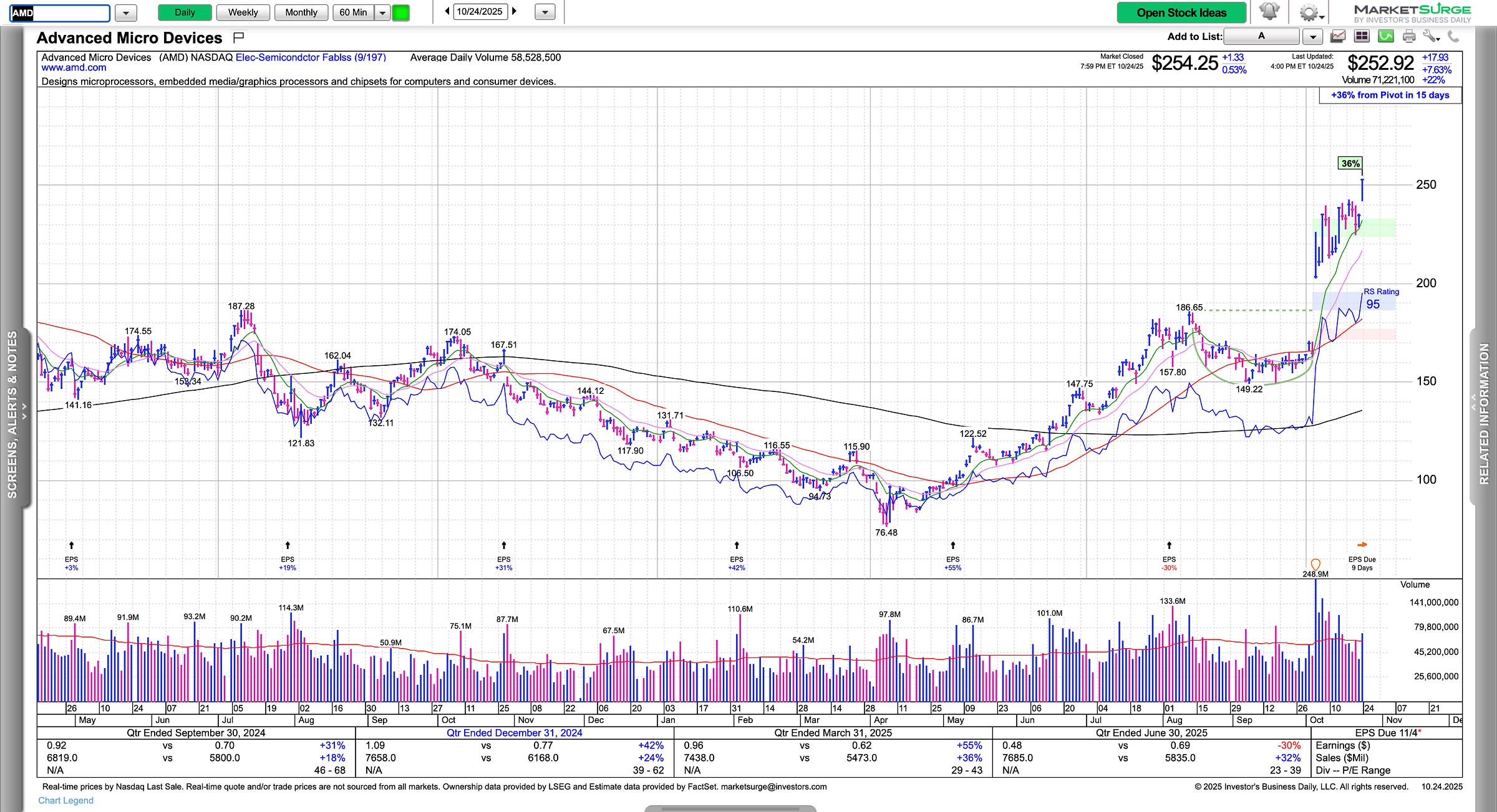 We focused on a handful of liquid leaders for the AI theme, AMD, NVDA, TSLA, PLTR. So far these are pushing higher, the big question for continuation in this cohort in general I believe will be NVDA and it’s action around the 5 trillion market cap.