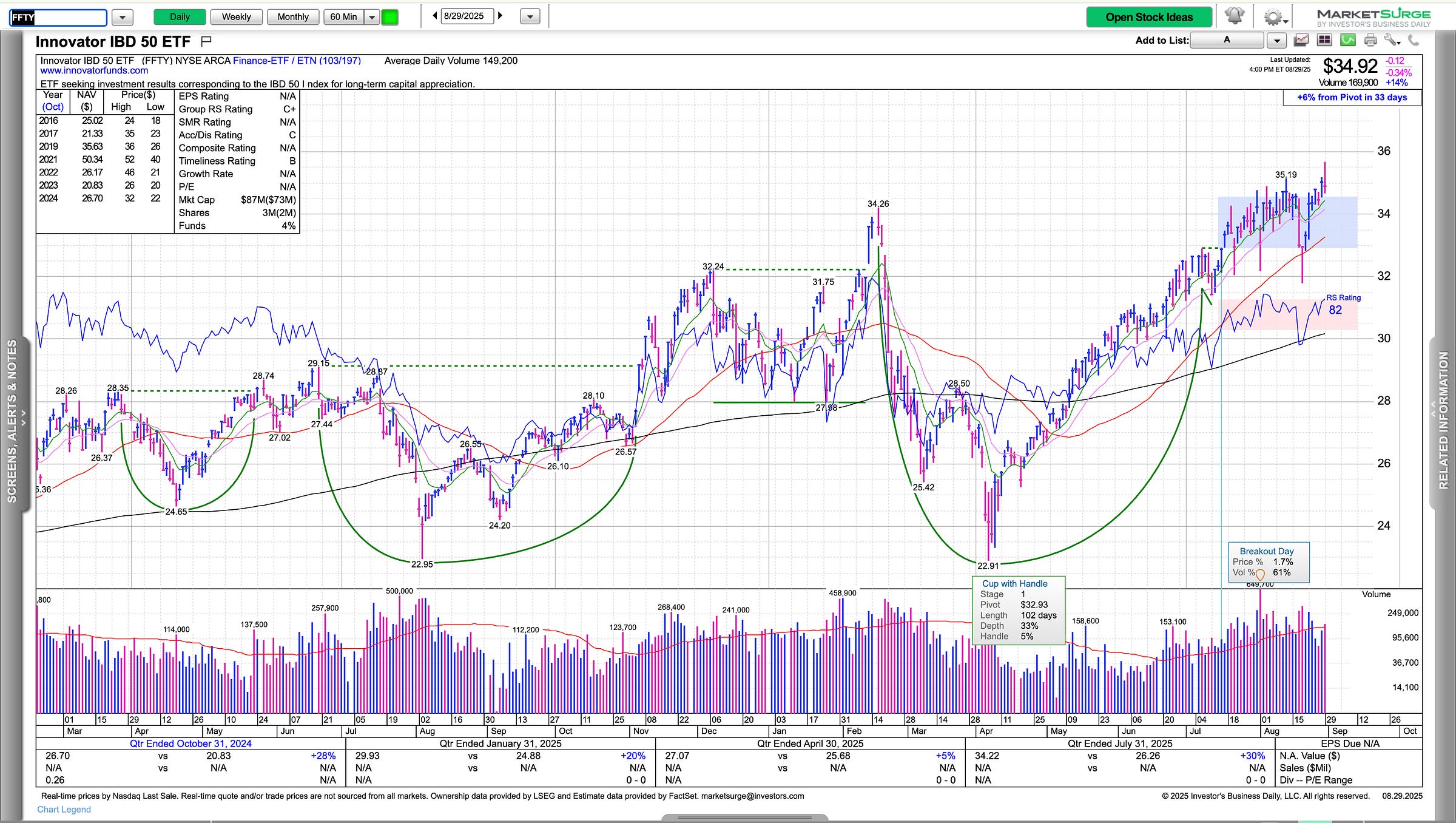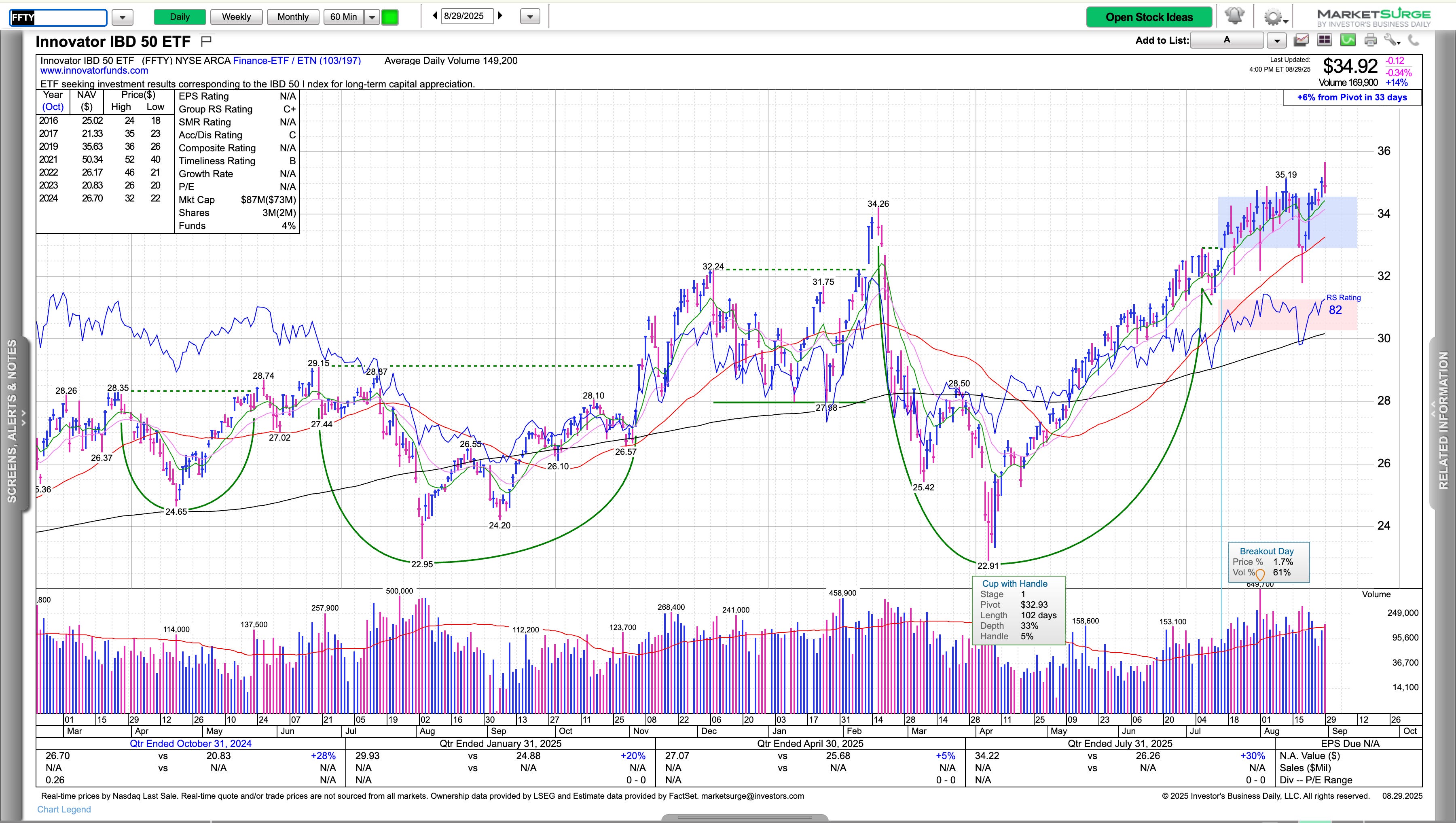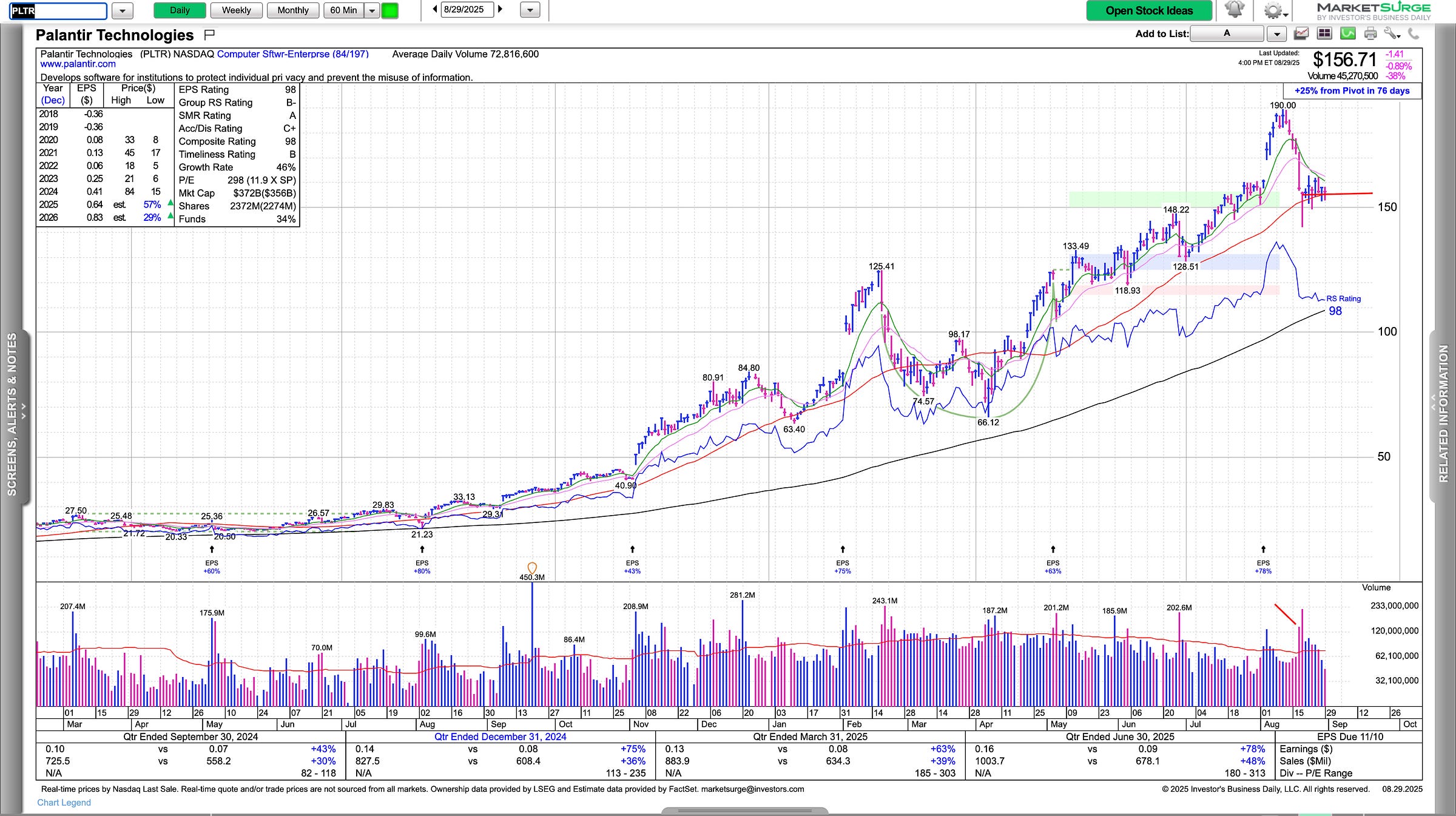 Institutional leadership remains a bit underwhelming—setups are decent, but we’re still not seeing clean breakouts across the board. Google has begun to push, which is encouraging, but the broader group needs to follow suit if we’re going to get meaningful confirmation. The overarching theme continues to be market-cap expansion.