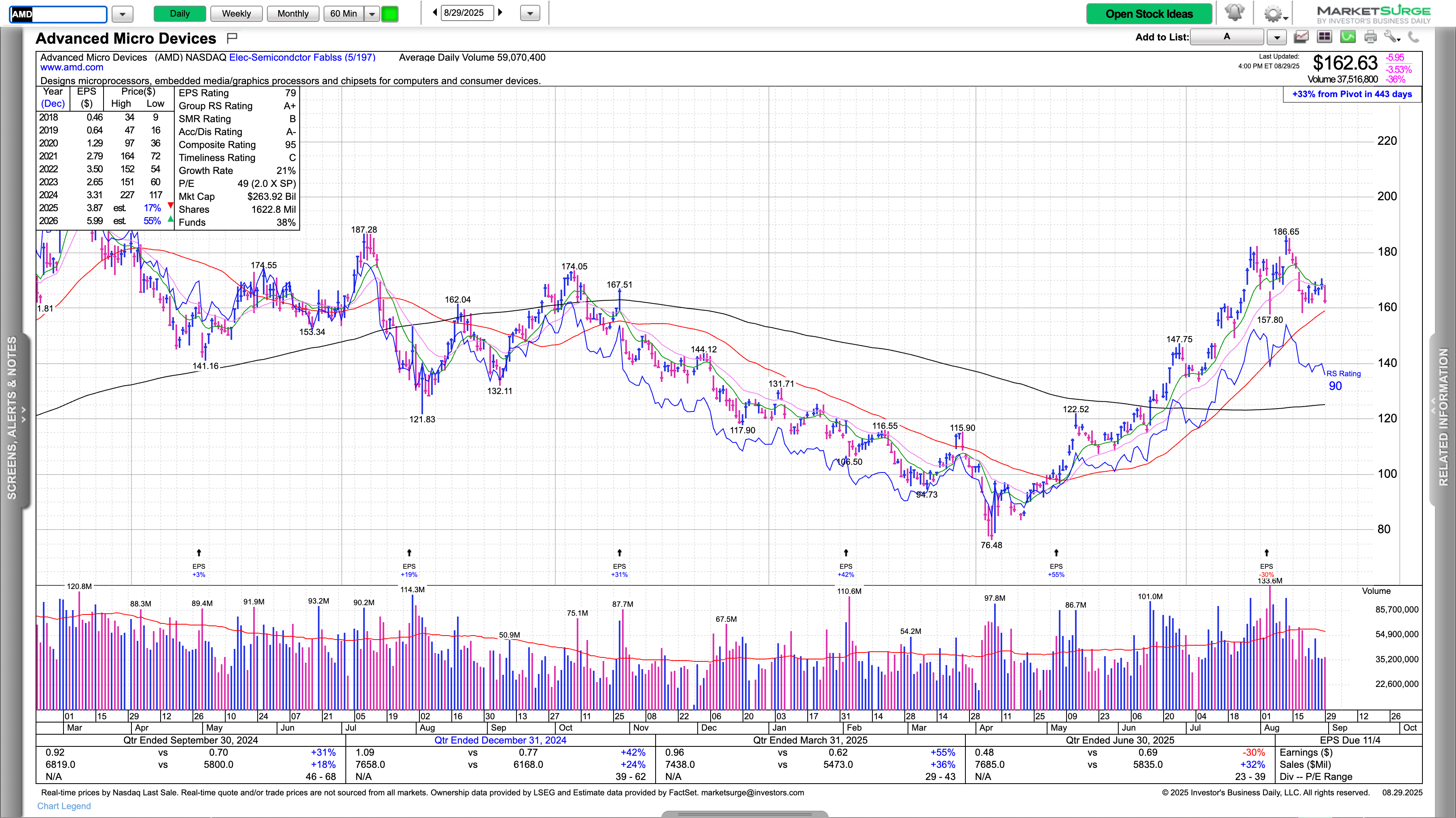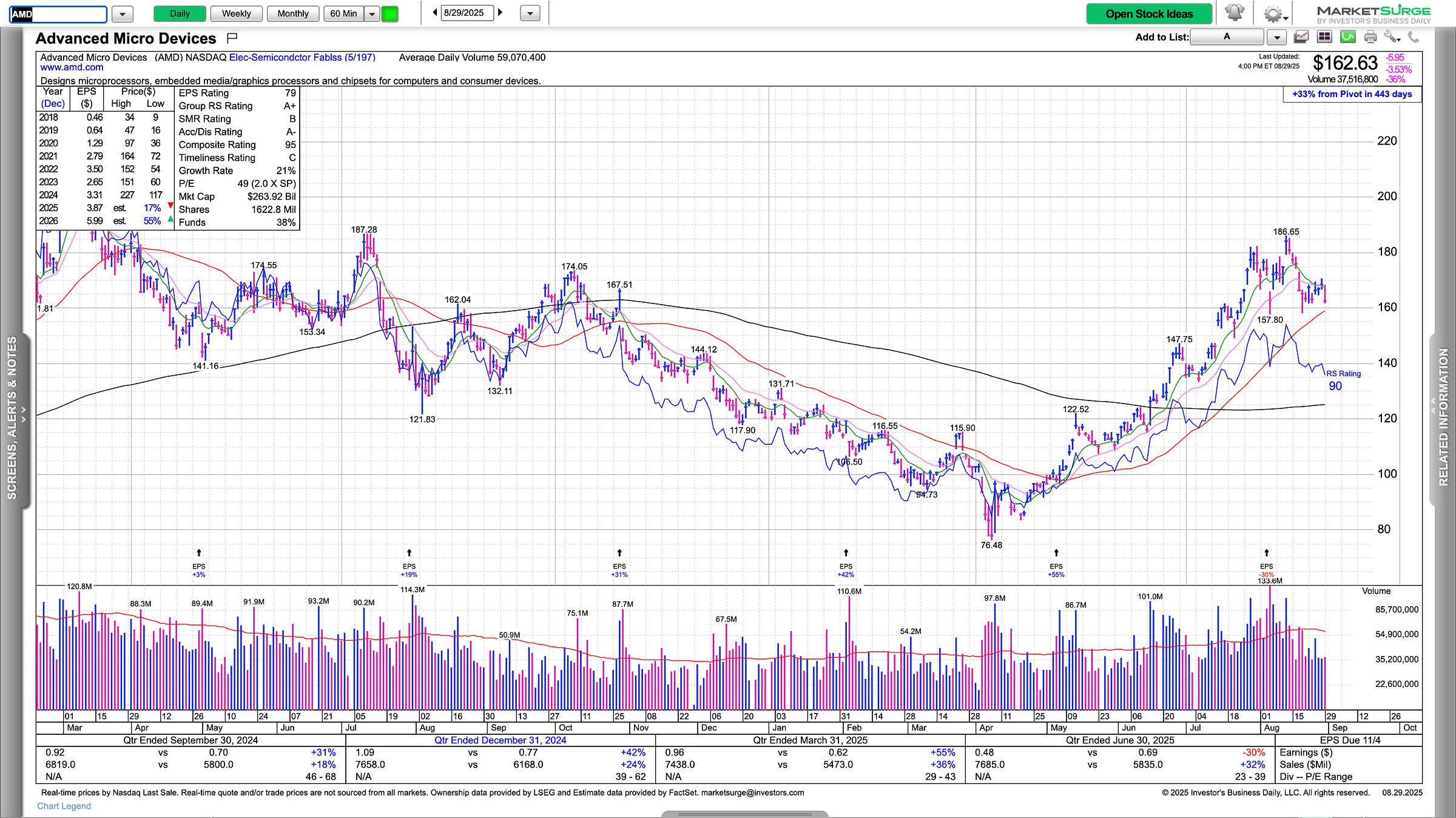 AMD has been plagued by the $168 level and continues to be, continues to sit above the 50 day so may just a short digestion here, through $174 AMD should be good to go for a breakout is my thought.
