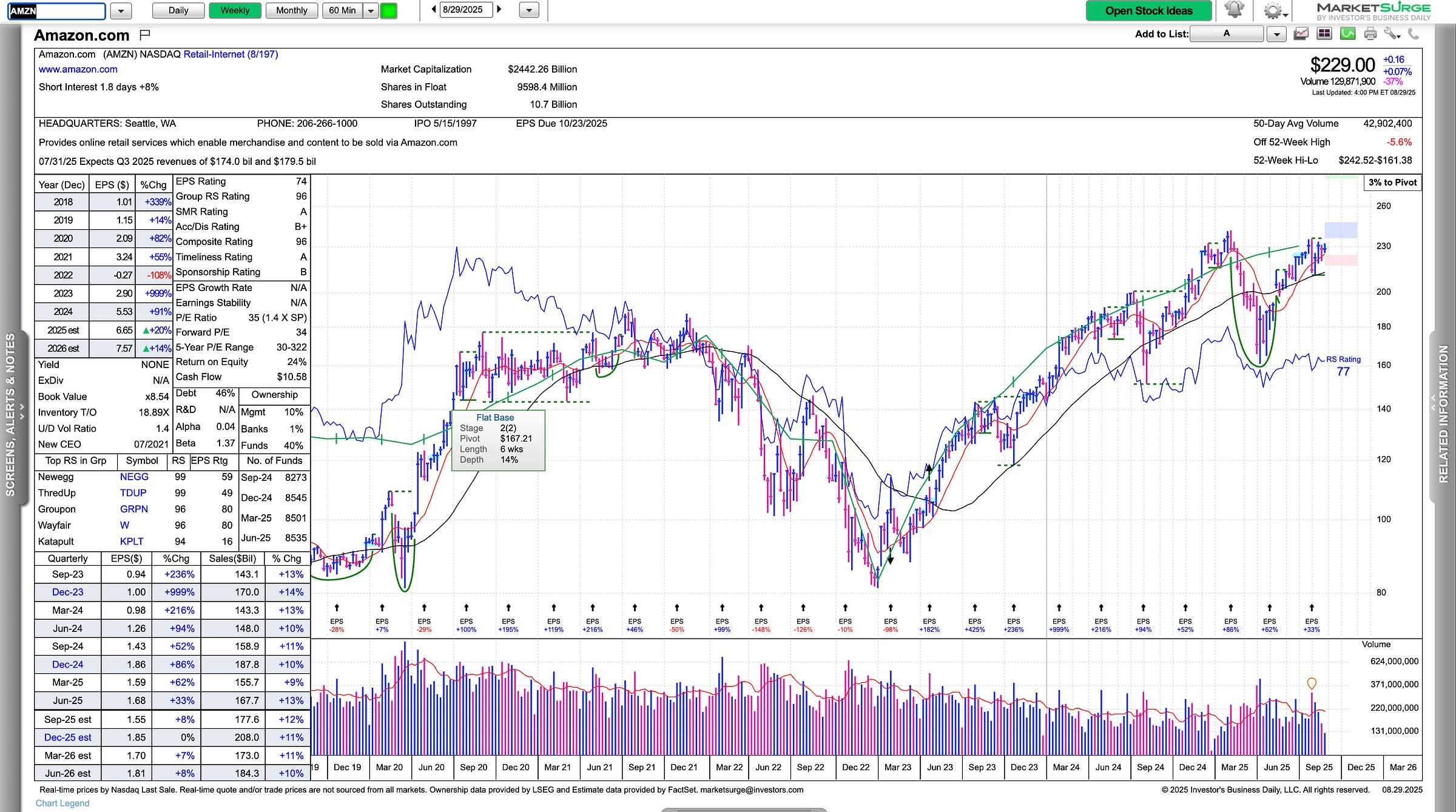 AMZN a bit better that others, this one has frankly been slow motion so I do want to see some power out of this one following the breakout, I am going to assume that to be the case for now but we shall see as it makes it closer to that pivot.