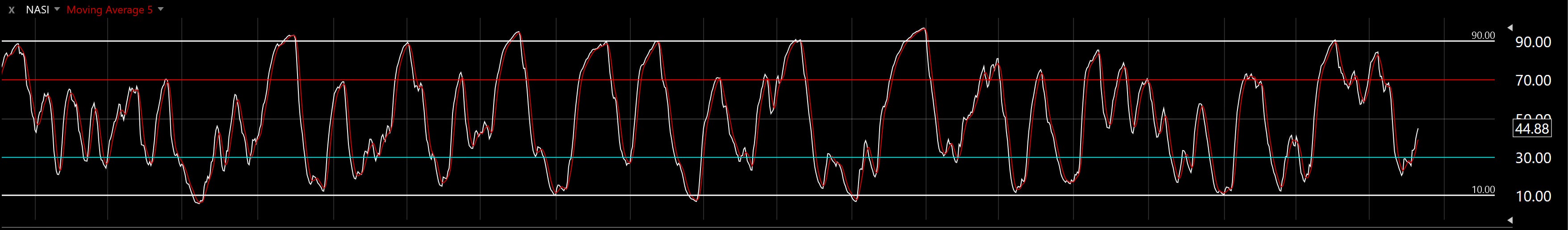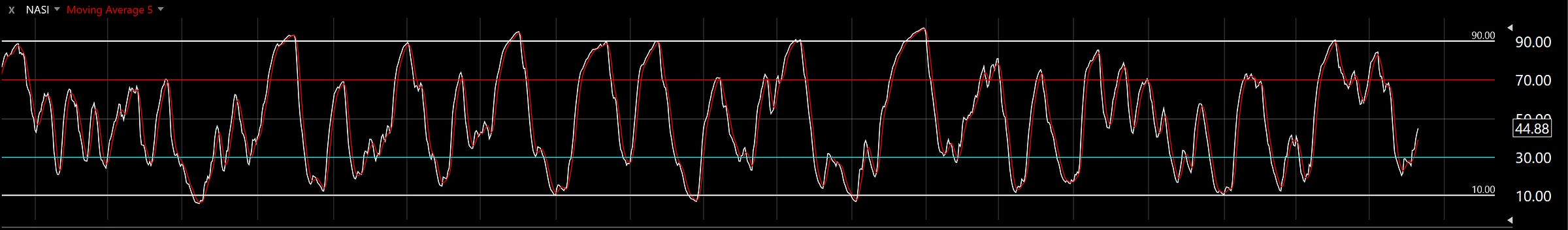 The NASI is beginning to turn up into an area that could unleash a genuine power wave higher, but I want to temper that optimism with caution. This is exactly the type of level where it makes sense to let the market prove itself before we lean in aggressively. That means waiting for upside hurdles to be taken out and confirmed, rather than anticipating them and getting caught in unnecessary drawdown.