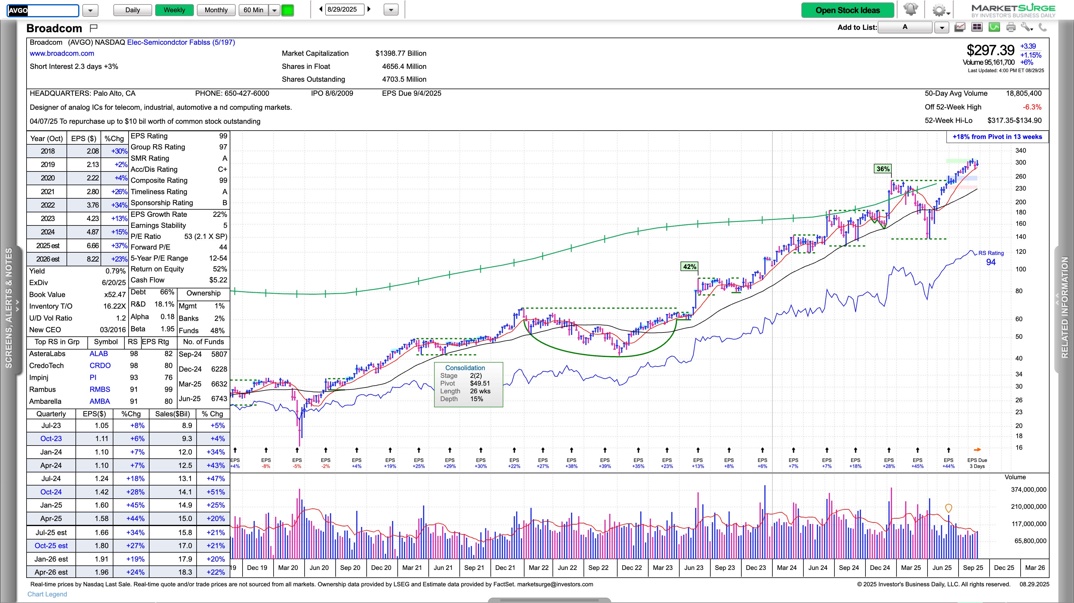 AVGO been riding the breakout higher, reports this week, should be a good indication for semis going forward.